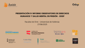 En 2019 creamos el observatorio de derechos humanos, salud mental y prisión formado por Instituto de Derechos Humanos, Servicio Jesuita Migrante, ICAV, Coordinadora de entidades del entorno penitenciario de la Comunitat Valenciana y la Asociación Española de Neuropsiquiatria, publicando el primer informe en julio de 2021.